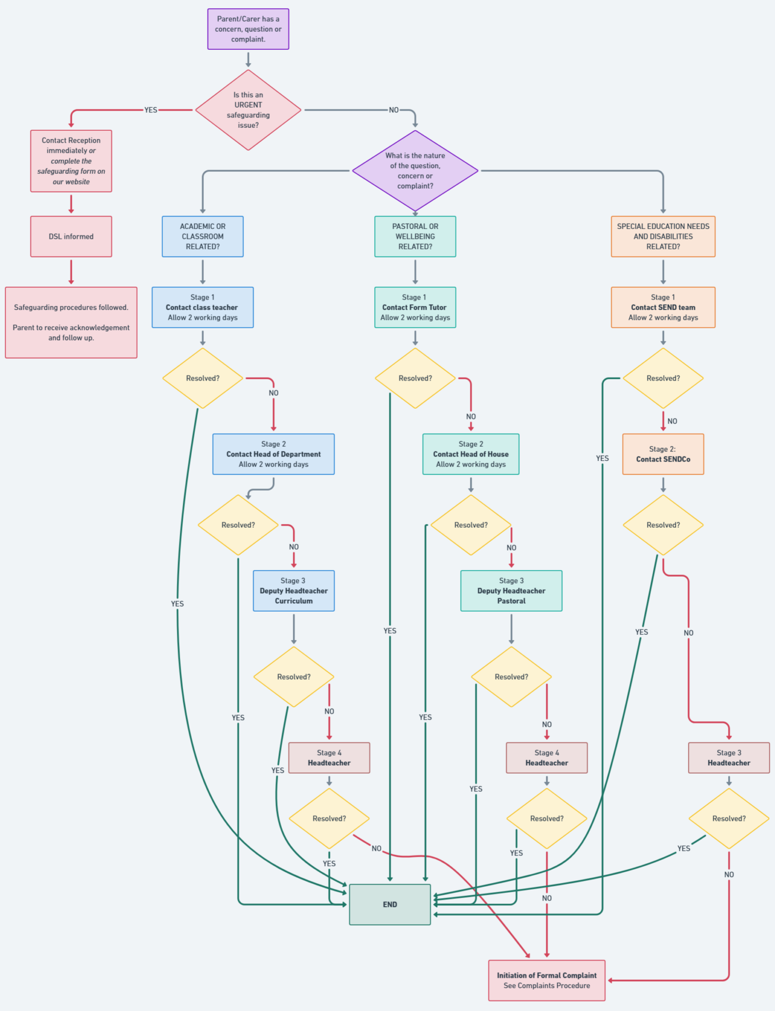 To support this, we have outlined a simple escalation pathway below. This ensures concerns are considered fairly and at the right level, while also allowing senior leaders to become involved when appropriate.